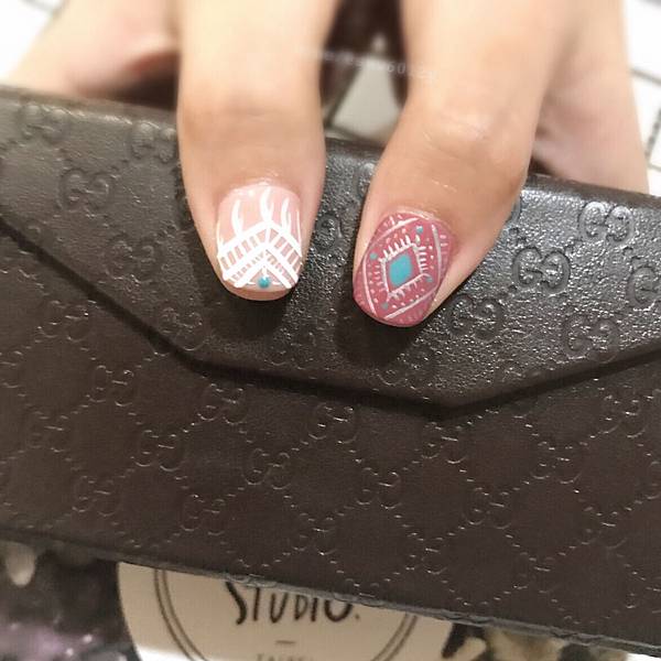 捕夢網和大拇指的圖騰是手繪,其他都是用貼的。我超級喜歡這次的手繪,不管是捕夢網還是民俗風圖騰都是我很欣賞的風格