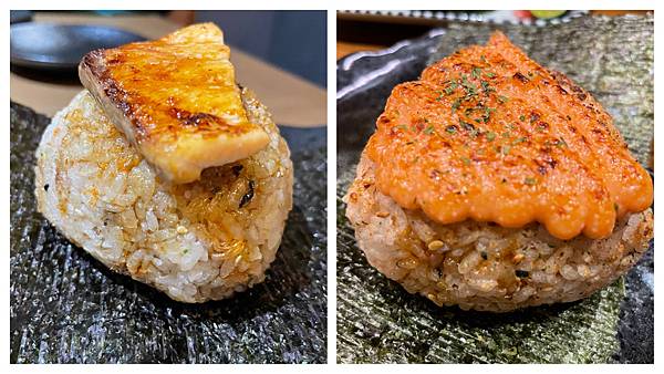 左邊是鮭魚飯糰💰100、右邊是明太子飯糰💰80